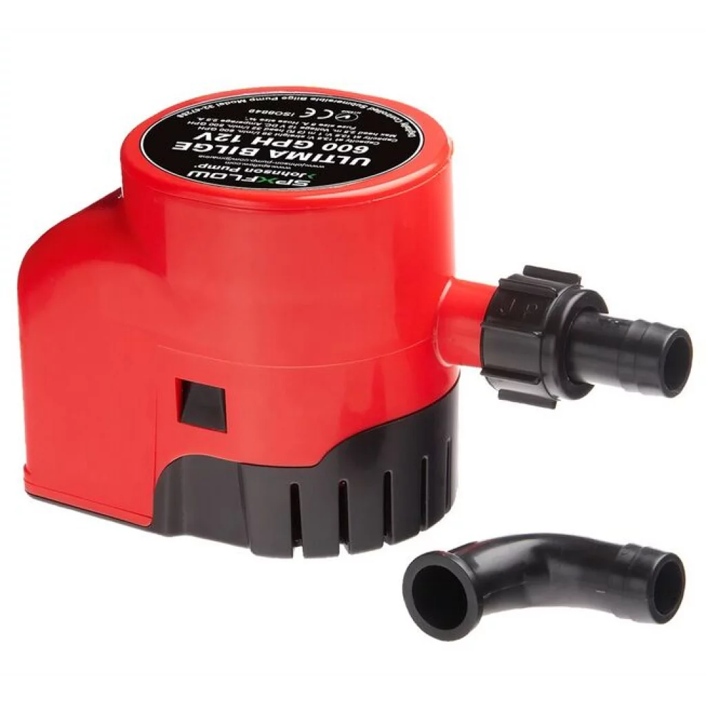 Med innebygd Ultima Switch digital nivå bryter – dvs. bare 3 skruer for å feste pumpe og bryter Leveres med rett og 90 graders slangekobling